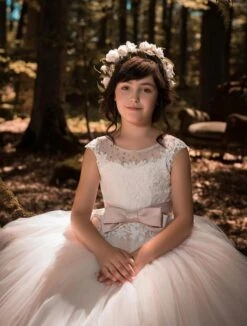 Flower Girl Ball Gown With Leaf Décor And A Train(Flower Girl Ball Gown With Leaf Decor And A Train)