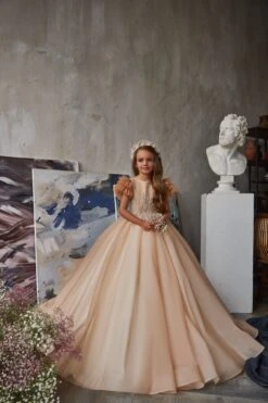 3216 Luxurious Peach Flower Girl Dress(3216 Luxurious Peach Flower Girl Dress)