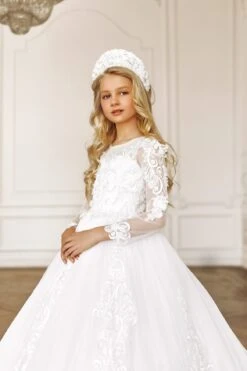 Long White Communion Lace Dress With Sleeves(Long White Communion Lace Dress With Sleeves)