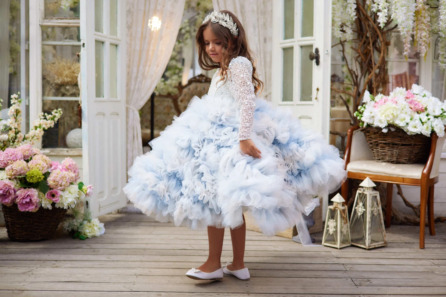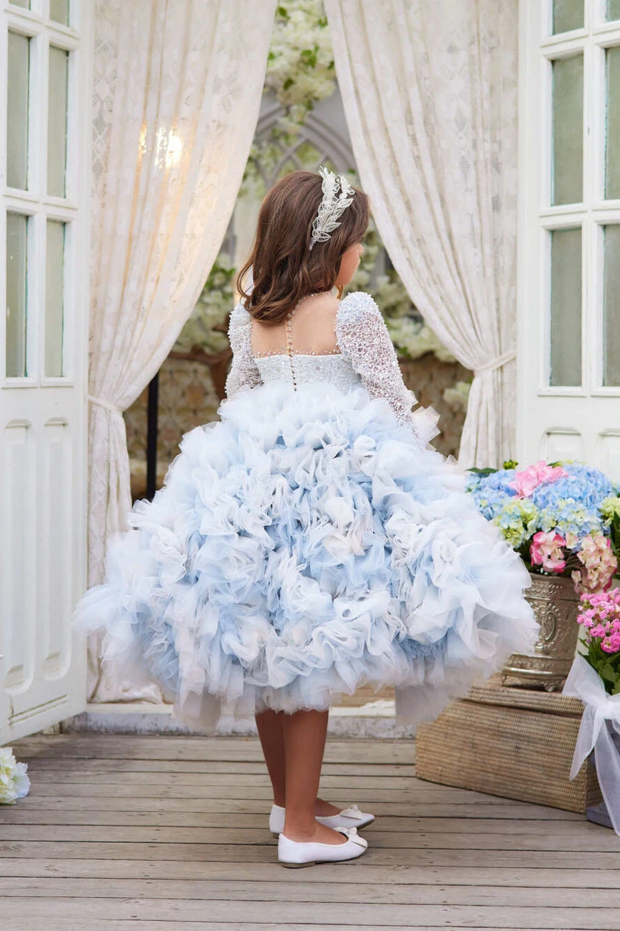 The “Modesto” is versatile for many special occasions. It is perfect for weddings, as a flower girl or junior bridesmaid dress. It brings a touch of enchantment to milestone birthdays and shines on the runway. As the festive seasons approach, this dress becomes a highlight at holiday gatherings, making celebrations like Christmas or New Year’s Eve unforgettable. Furthermore, at upscale events such as galas or charity balls, where the dress code calls for a touch of grandeur, this dress meets the moment with effortless elegance. In every setting, it promises a beautiful experience waiting to be cherished.