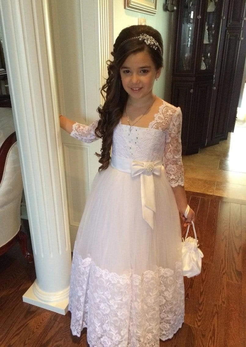 Lace Long Sleeved First Communion Dress for Communion Day.