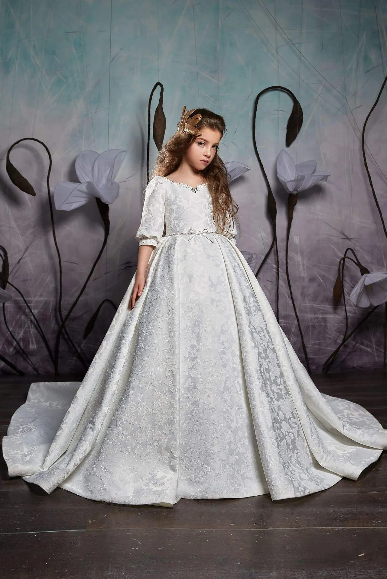 Elegant Classic Princess Style Communion Dress(Girls Elegant Classic Princess Style Cuffed Half Sleeves Ball Gown With Train)