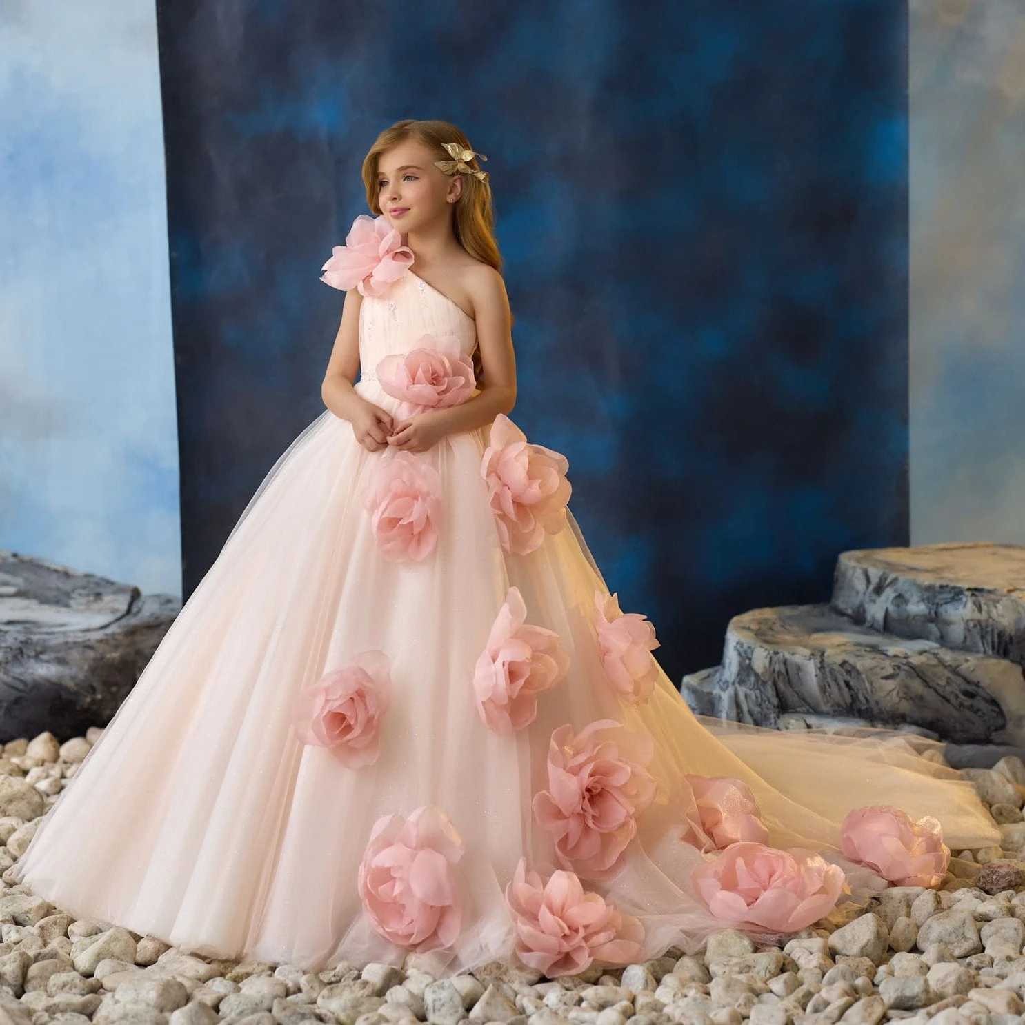 This gown features an asymmetrical strap design, adding a modern twist to its classic elegance. Adorned with large, lush roses that cascade gracefully down the gown, it transforms into a floral masterpiece that flows seamlessly into the train.