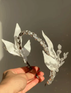 Transform her special day into a fairy tale with this exquisite floral pearl crown headband. Carefully crafted by hand, it features a padded ivory base adorned with delicate petal-like pearls, shimmering crystals, and dainty beaded stems arranged in a regal halo. The combination of translucent petals and iridescent beads creates a soft, ethereal glow that complements both traditional and modern dresses.