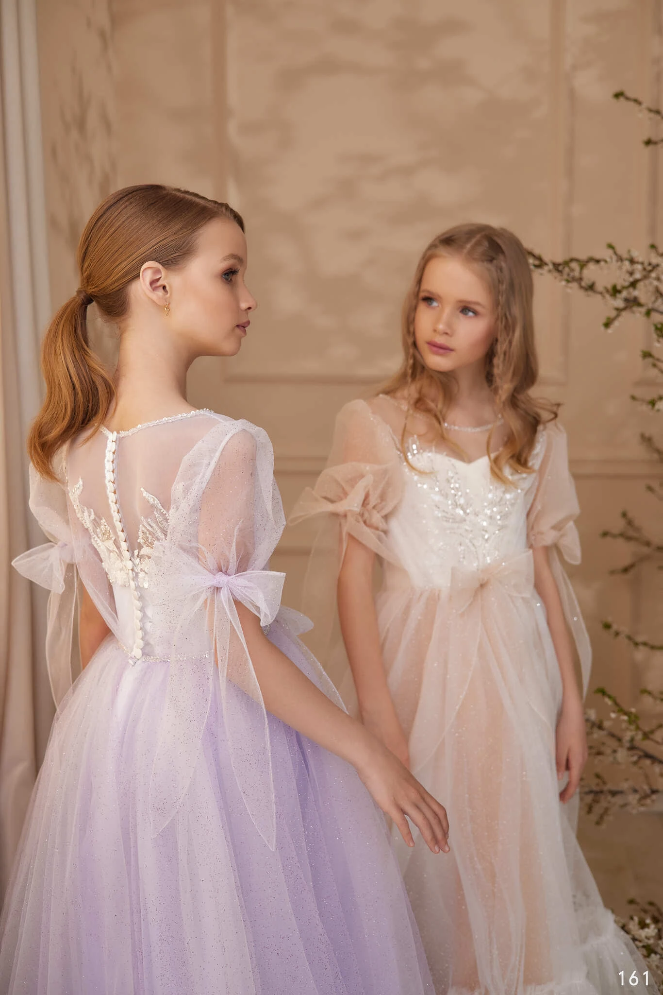 Flower Girls Tulle Dress With Bow Sleeves(Flower Girls Tulle Dress With Bow Sleeves)