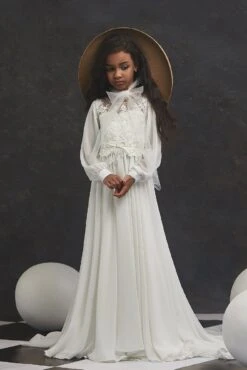 Lace And Chiffon A-line Gown With Bishop Sleeves(Lace And Chiffon A Line Gown With Bishop Sleeves)