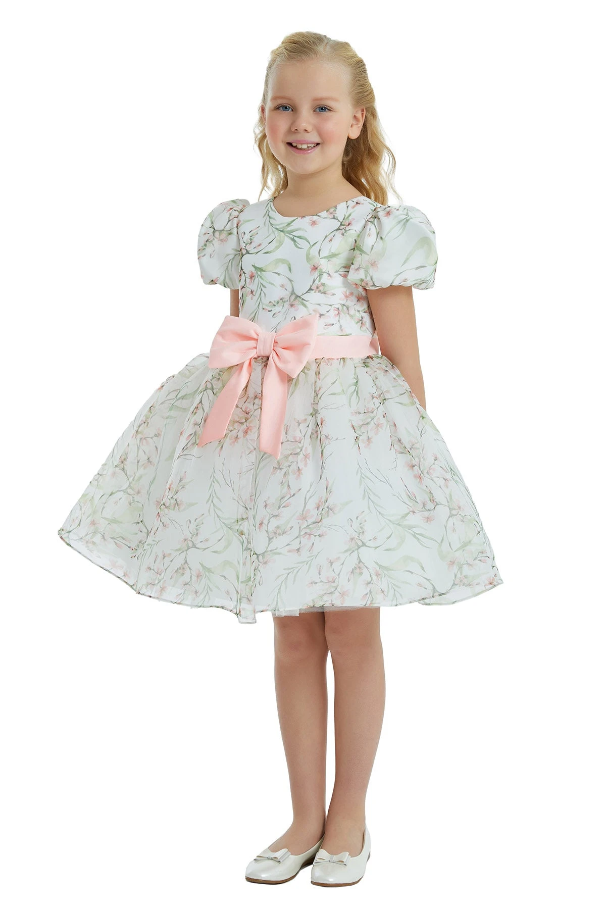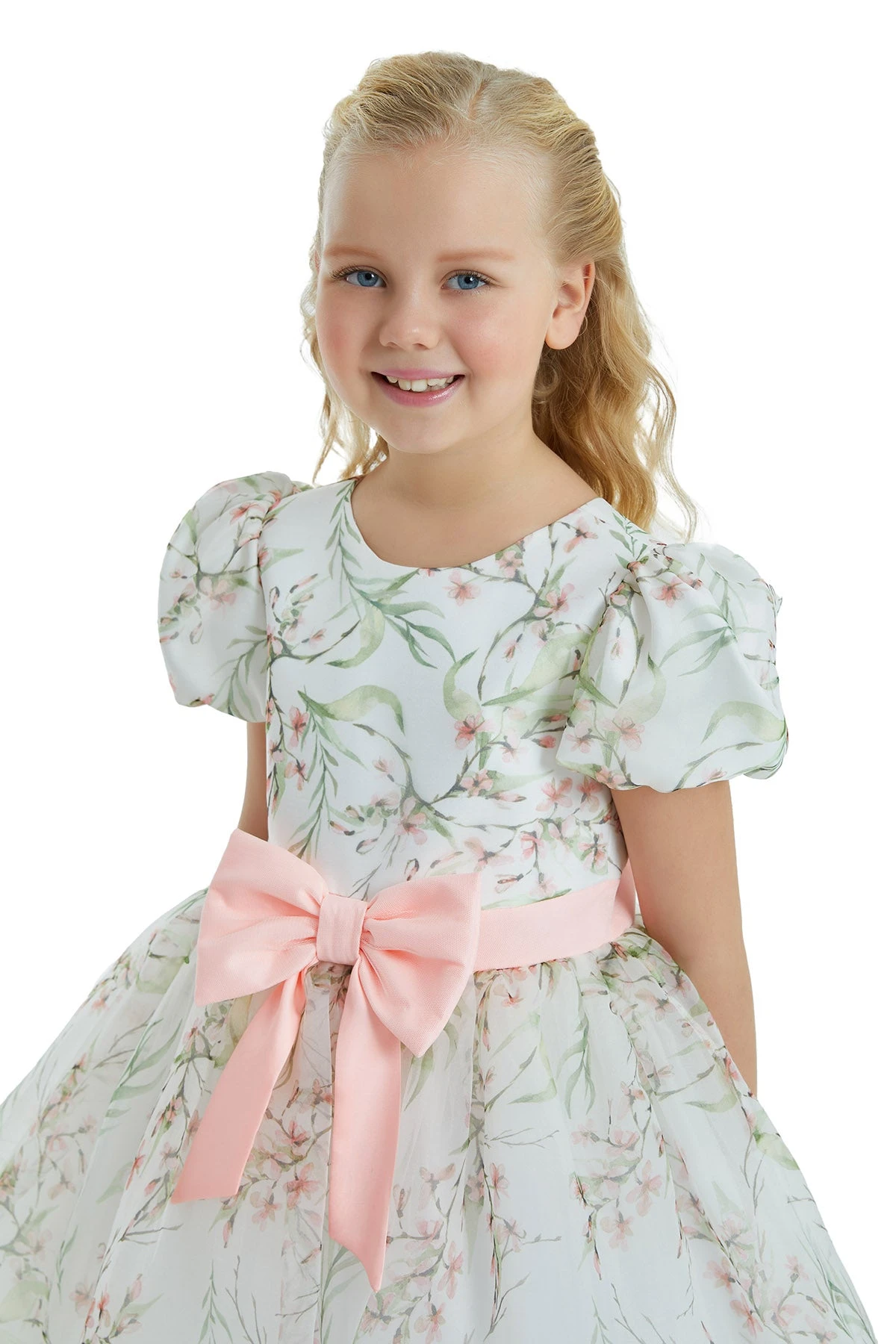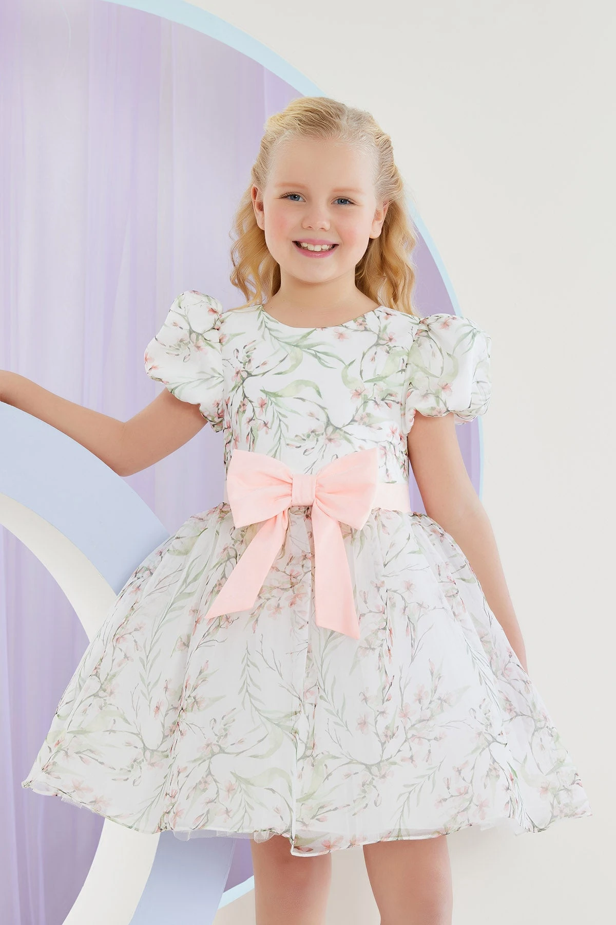 Kids Floral Spring-Summer Dress With A Pink Bow(Kids Floral Spring Summer Dress With A Pink Bow)