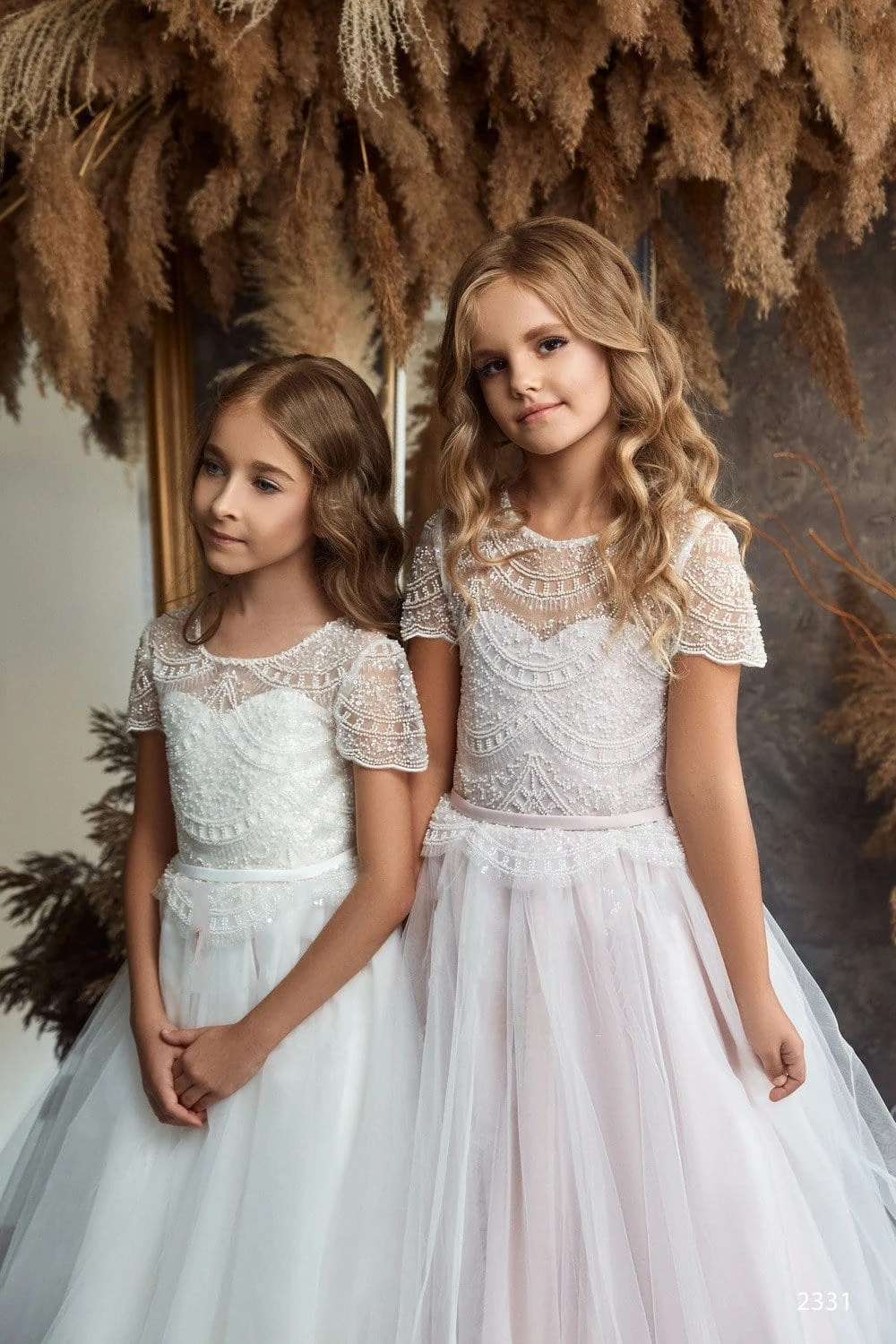 L2331 Short Sleeve Embellished Communion Dress(L2331 Short Sleeve Embellished Communion Dress)