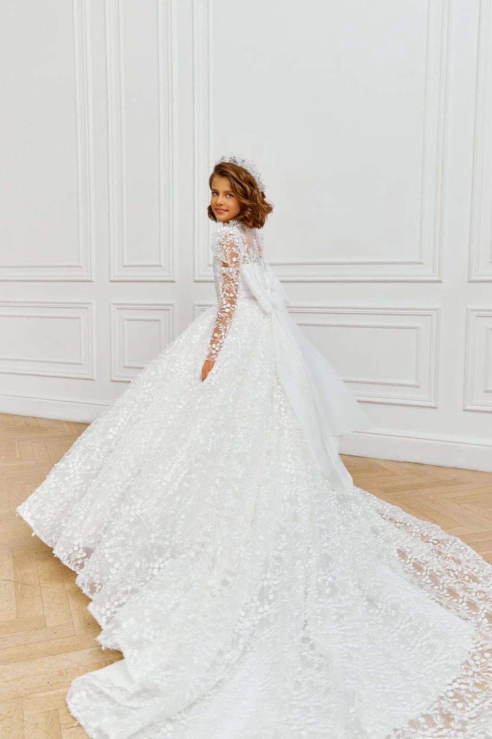 Elegant 1st Communion Dress in Floral Embroidery Lace