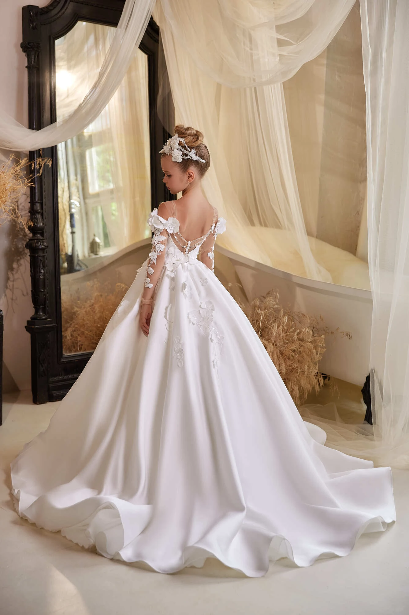 This ethereal gown is a perfect ensemble for many special occasions. As your little one graces the aisle as a flower girl or stands by the bride’s side as a junior bridesmaid, this ensemble promises to add an enchanting touch to every snapshot. It’s not just limited to weddings; whether she’s embodying a fairy tale princess at a fancy dress event or attending a grand celebration, this dress ensures she remains the centerpiece of admiration. Every detail speaks of charm, making it a timeless choice for any memorable occasion.