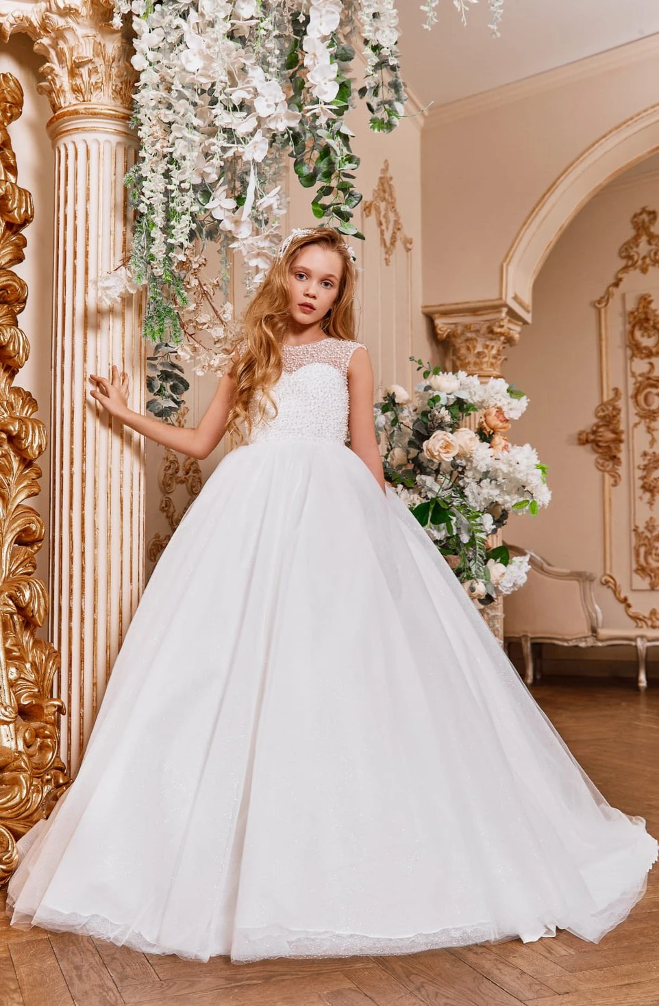 SKU: BWLHY 9689199247638 Category: White Flower Girl Dresses Tags: Ball Gown, Ball gown flower girl dress, First communion dress, Vintage flower girl